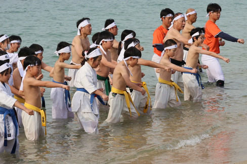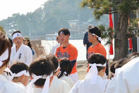 2月にも関わらず、この日は春のような陽気で厳しい寒行とはなりませんでしたが、海で気合を入れて稽古することができ、とても充実した一日となりました!